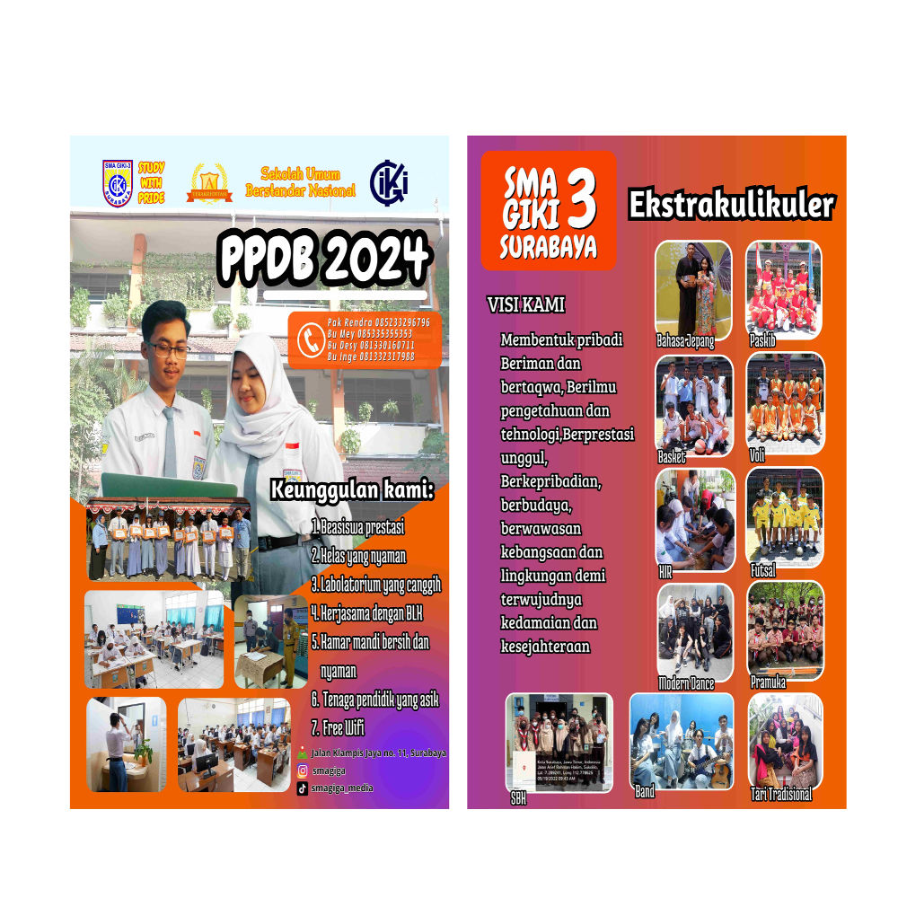 Segera daftarkan putra – putri anda untuk mendapatkan discount 25% bagi pendaftar pada gelombang 1 untuk menjadi siswa-siswi baru SMA GIKI 3 Surabaya